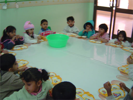 حيث تقدم وجبات طعام مدروسة تلائم نمو الطفل في هذة المرحلة وتلبي احتياجاته ويقوم الأطفال بتناول جبتهم في صالة المطعم في جو عائلي مع أقرانهم ومعلماتهم, وتساعد فترة الوجبة الطفل في الاعتماد على النفس وتعلم السلوك والآداب والقيم الإسلامية عند تناول الطعام |